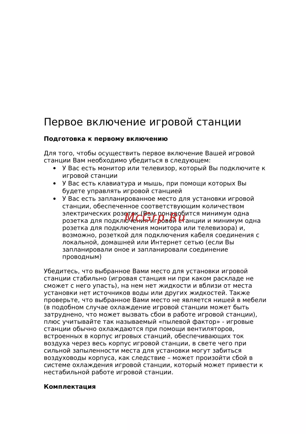 - Первое включение игровой станции p.24