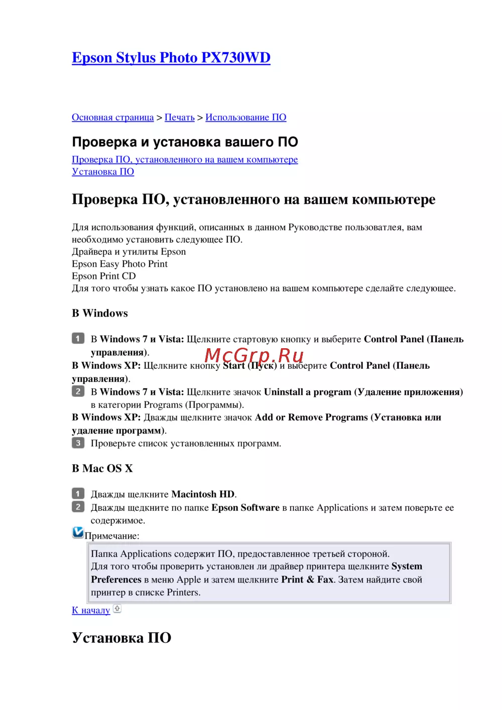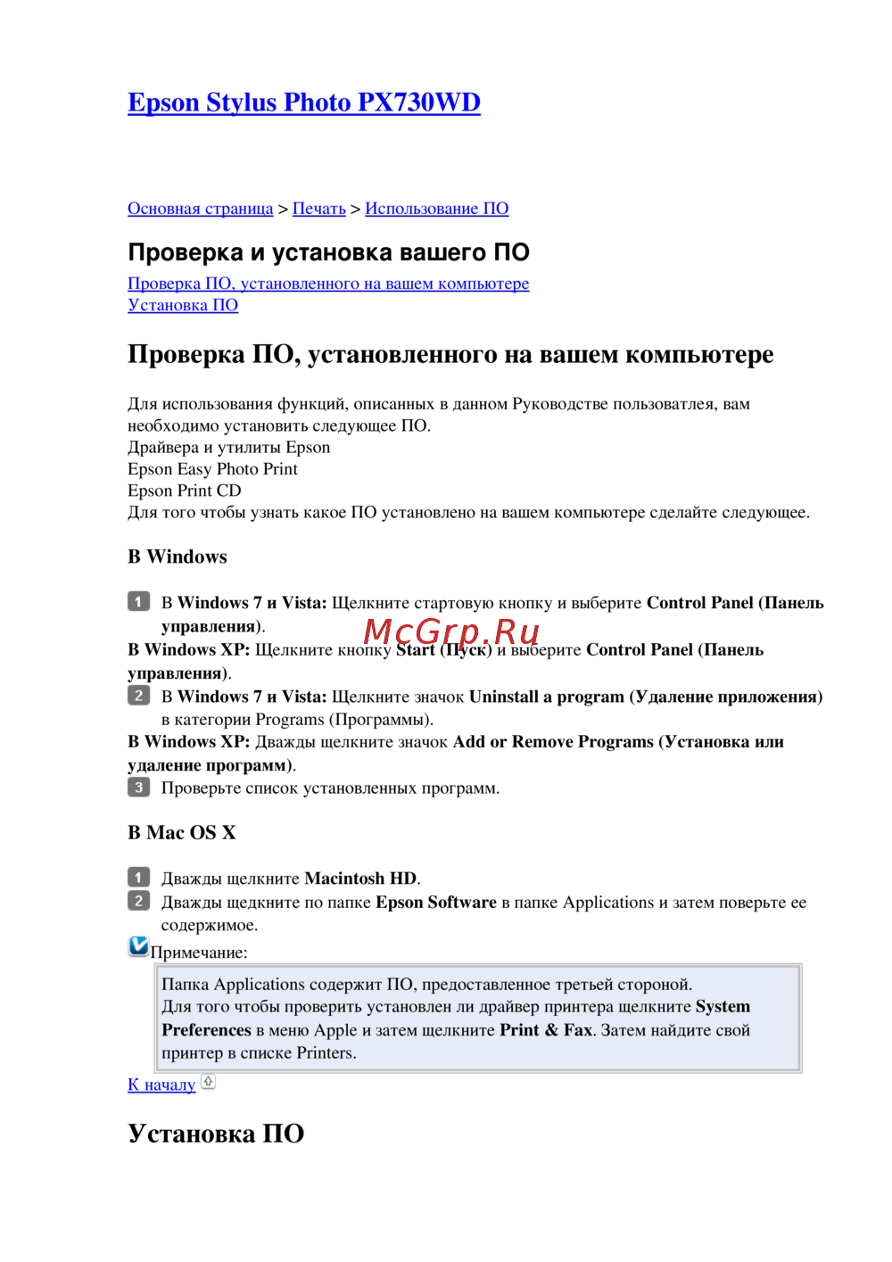Epson PX730WD — установка и проверка программного обеспечения для печати [1/176]
