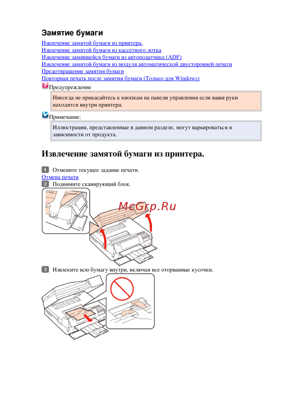 Узнайте, как правильно извлечь замятую бумагу из принтера, включая кассетный лоток и автоподатчик. Следуйте нашим советам для предотвращения замятий.