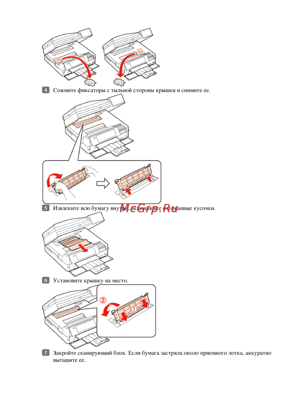 Извлеките всю бумагу внутри, включая все оторванные кусочки.