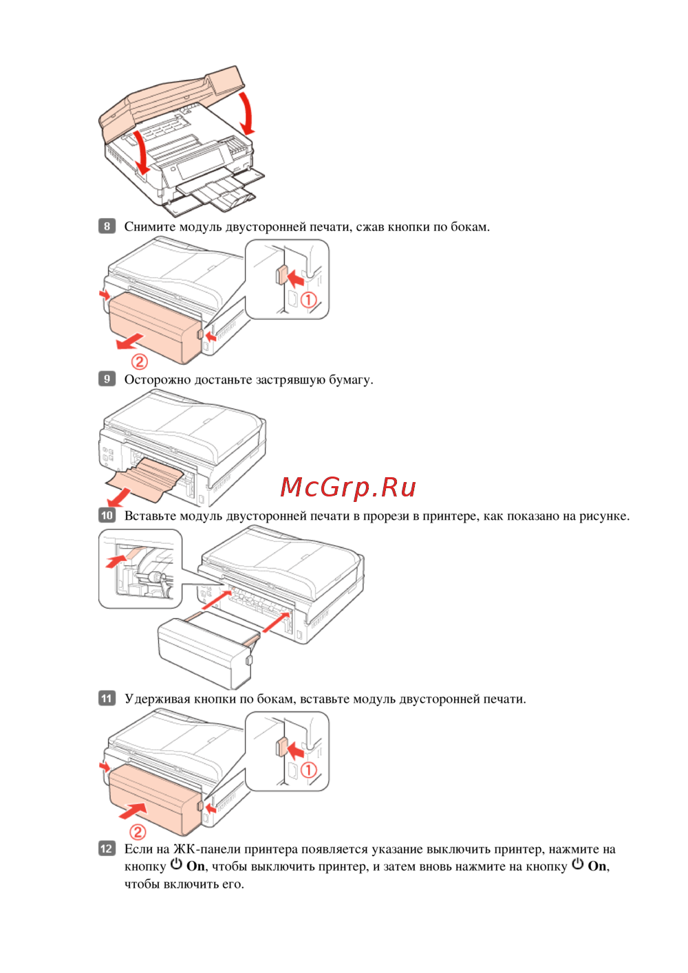 Если на ЖК-панели принтера появляется указание выключить принтер, нажмите на