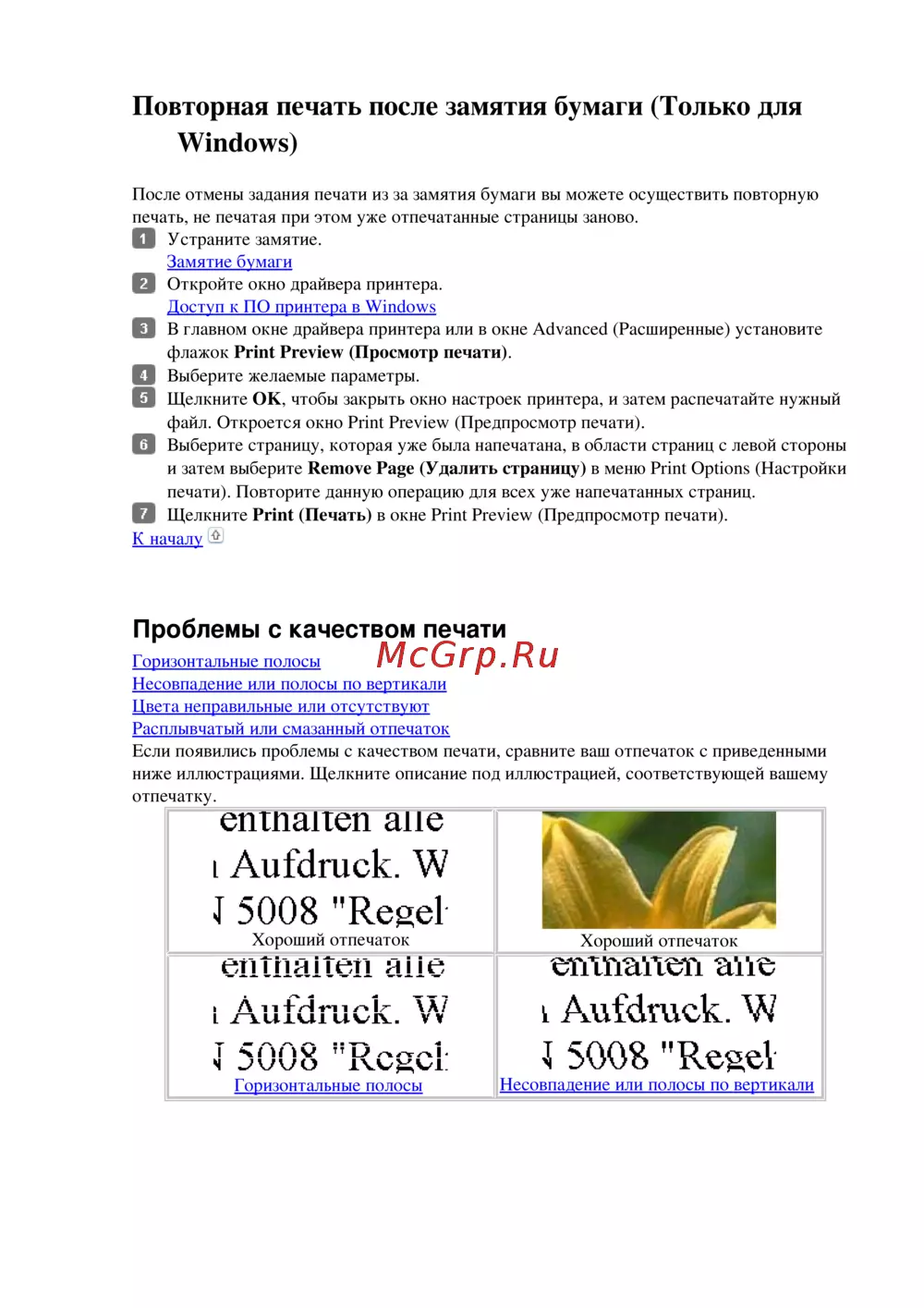 Если появились проблемы с качеством печати, сравните ваш отпечаток с приведенными