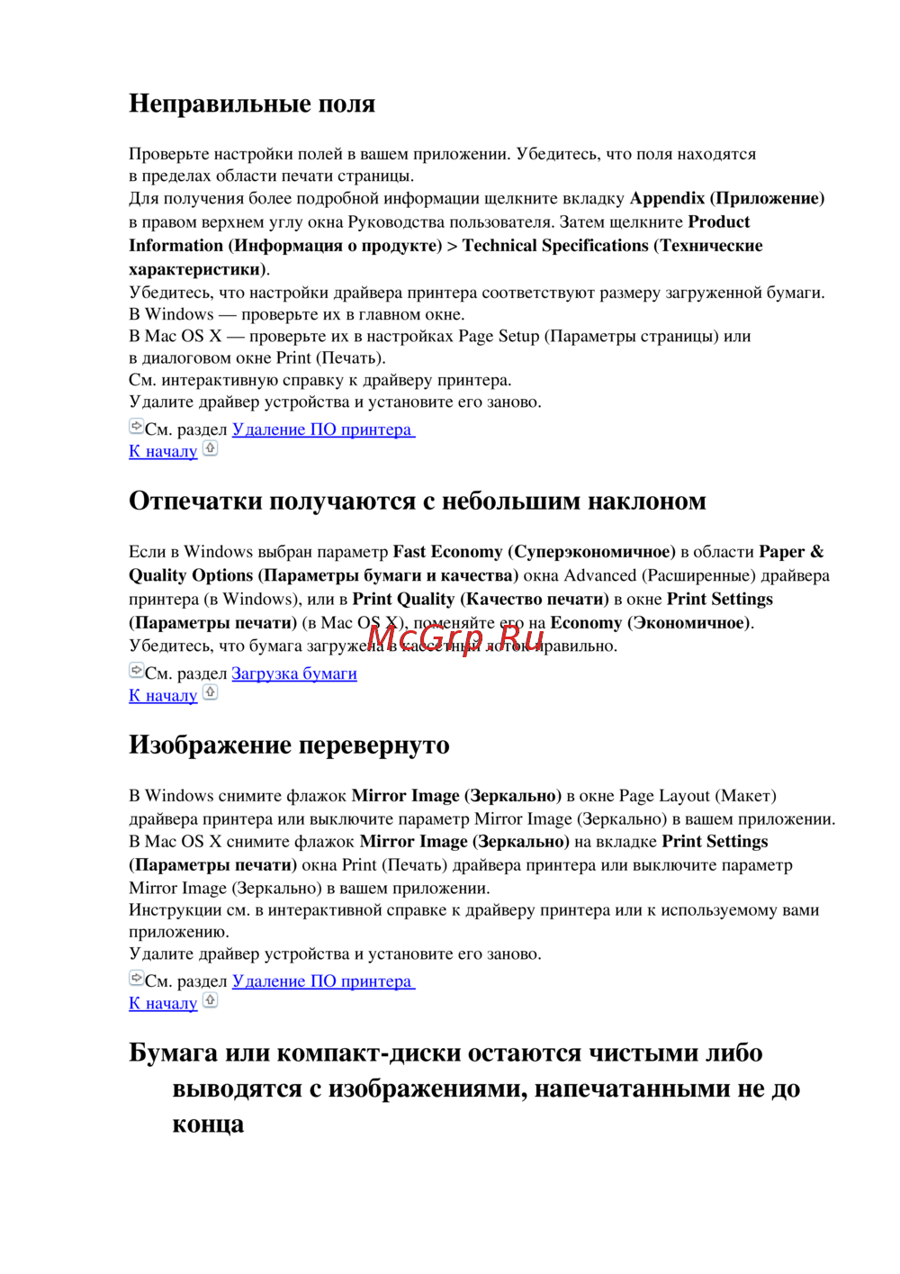 драйвера принтера или выключите параметр Mirror Image (Зеркально) в вашем приложении.