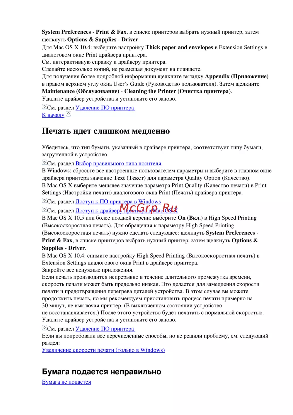 - Проблемы с подачей бумаги p.146