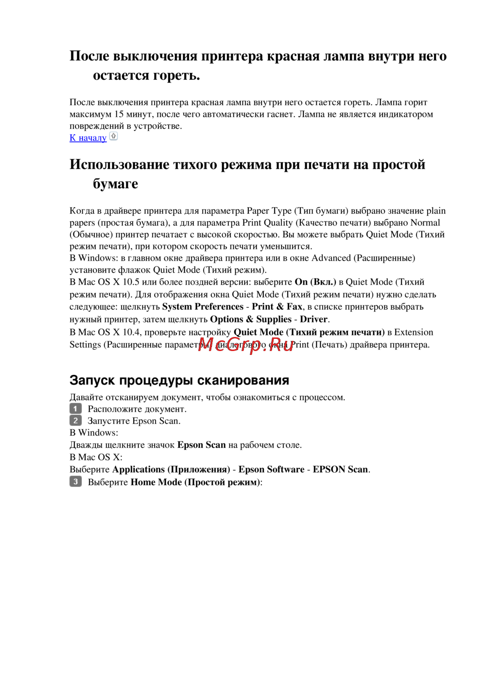 В Mac OS X 10.5 или более поздней версии: выберите On (Вкл.) в Quiet Mode (Тихий