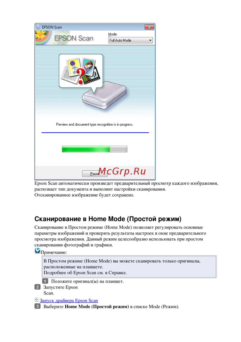 Сканирование в Home Mode (Простой режим)