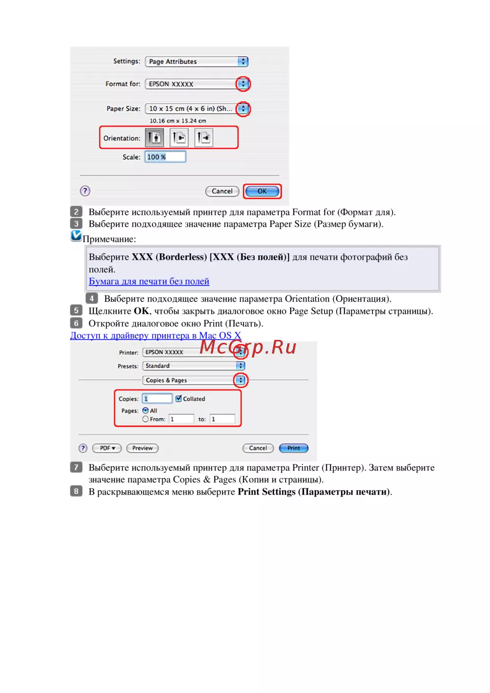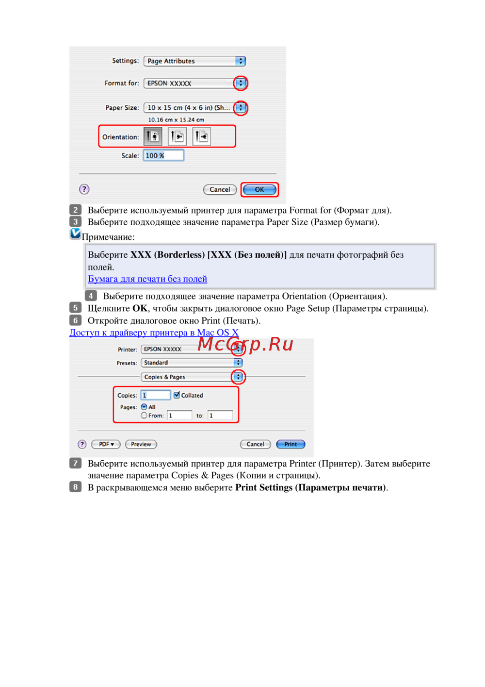 Выберите XXX (Borderless) [XXX (Без полей)] для печати фотографий без