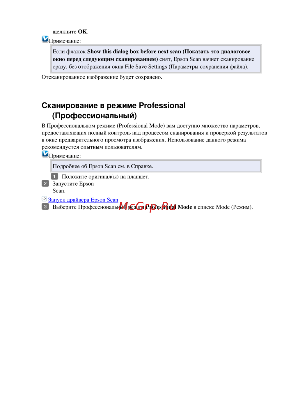 окно перед следующим сканированием) снят, Epson Scan начнет сканирование