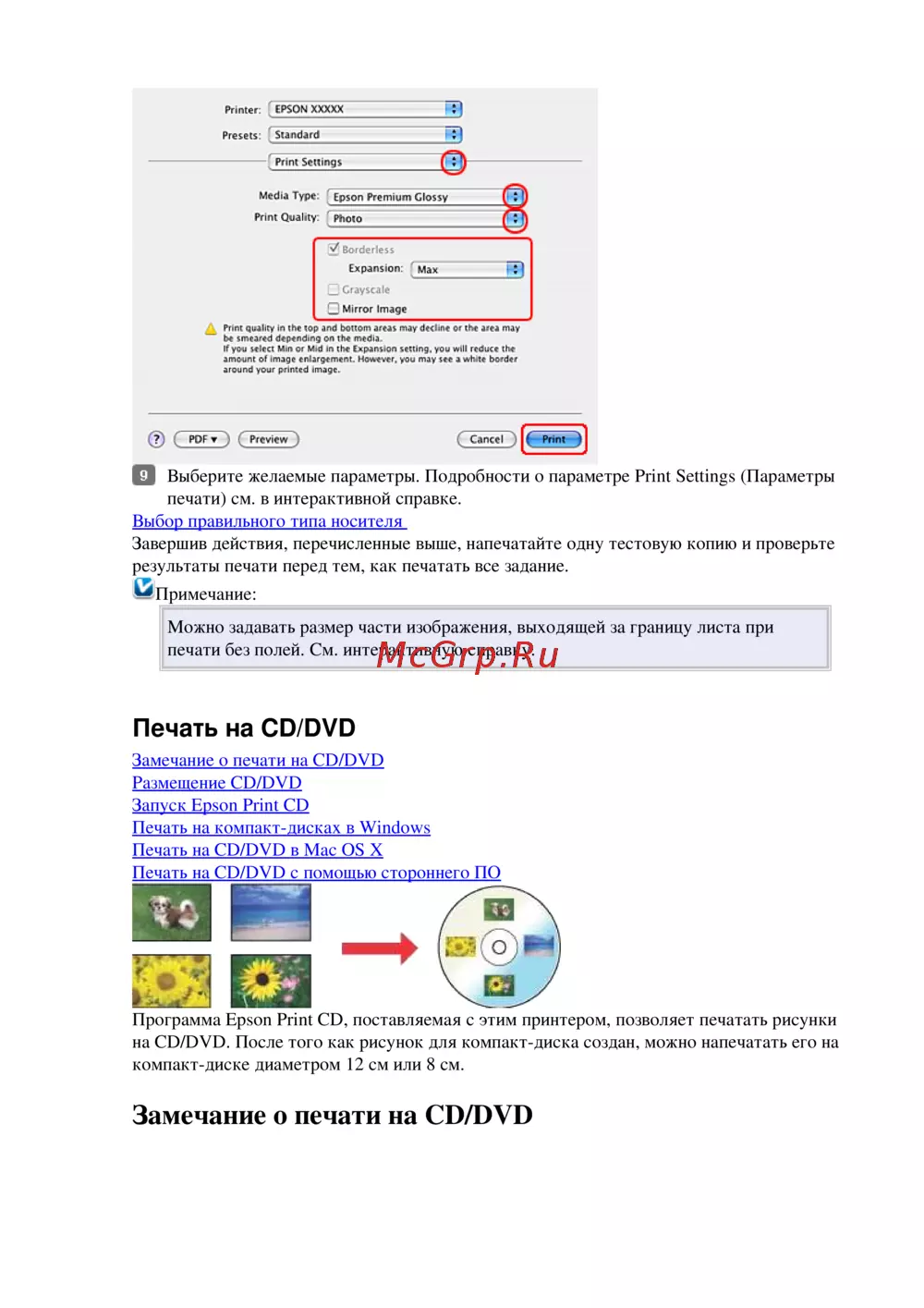 Замечание о печати на CD/DVD