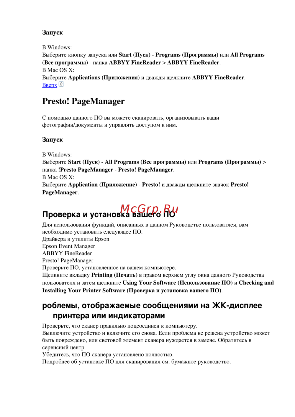 Подробнее об установке ПО для сканирования см. бумажное руководство.