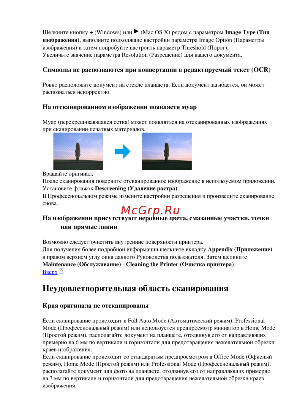 Муар (перекрещивающаяся сетка) может появляться на отсканированных изображениях