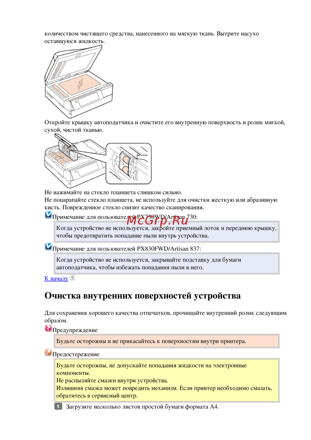 Epson PX730WD — рекомендации по уходу за устройствами для печати и сканирования [159/176]