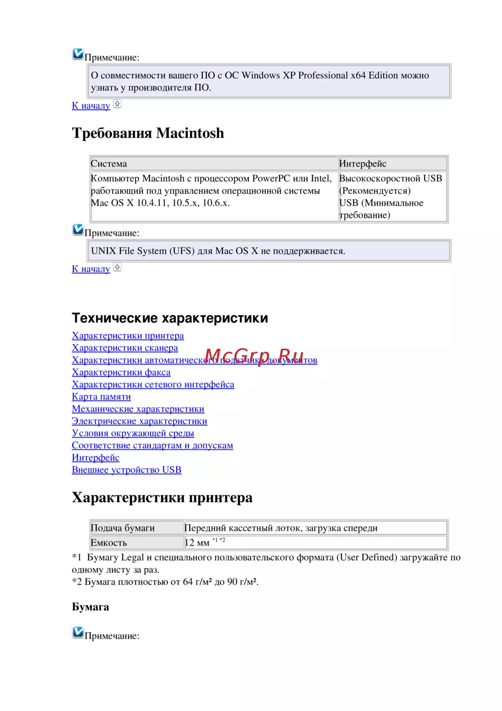 - Характеристики автоматического податчика документов p.168