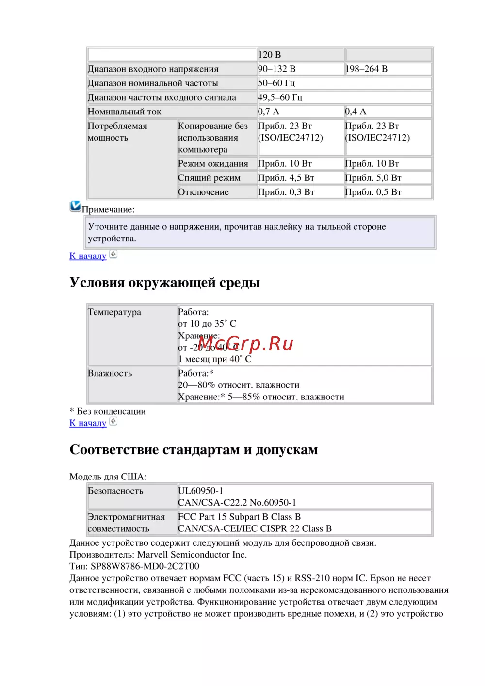Epson PX730WD — технические характеристики устройства: напряжение, частота и мощность [172/176]