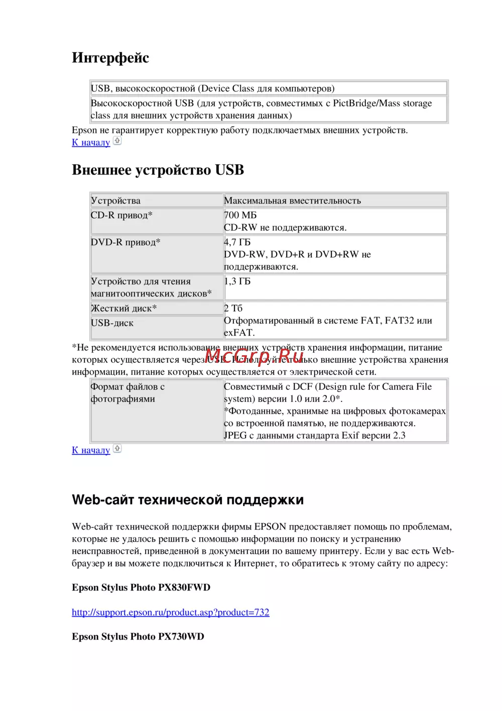 Epson PX730WD — высокоскоростной USB интерфейс для внешних устройств хранения данных [174/176]