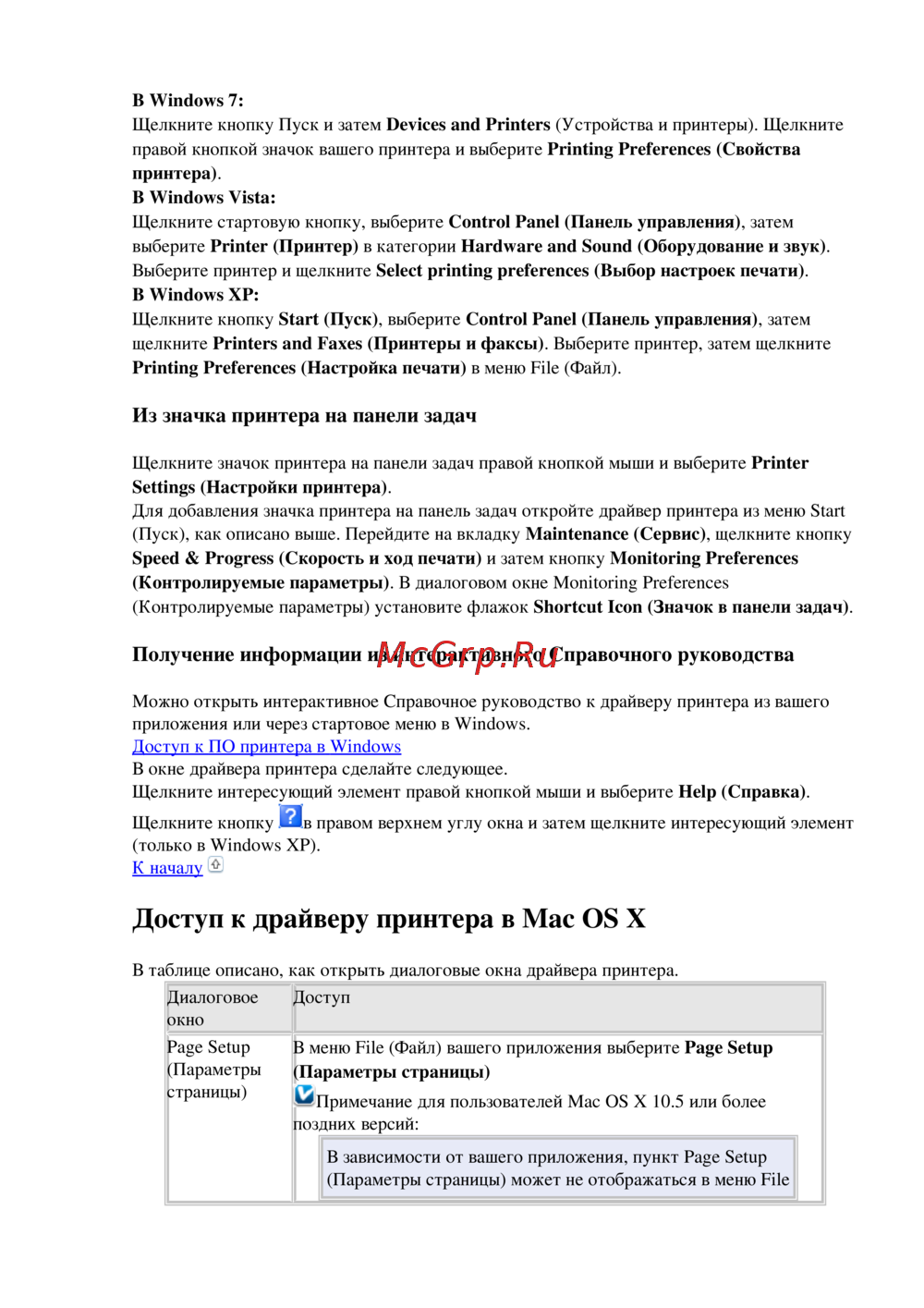 Можно открыть интерактивное Справочное руководство к драйверу принтера из вашего