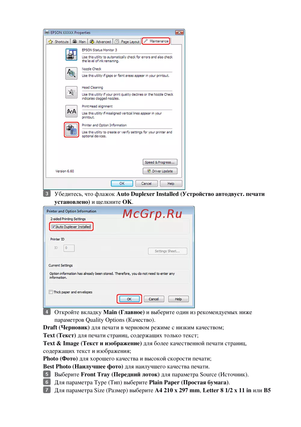 - Ручная стандартная двусторонняя печать только в windows p.46