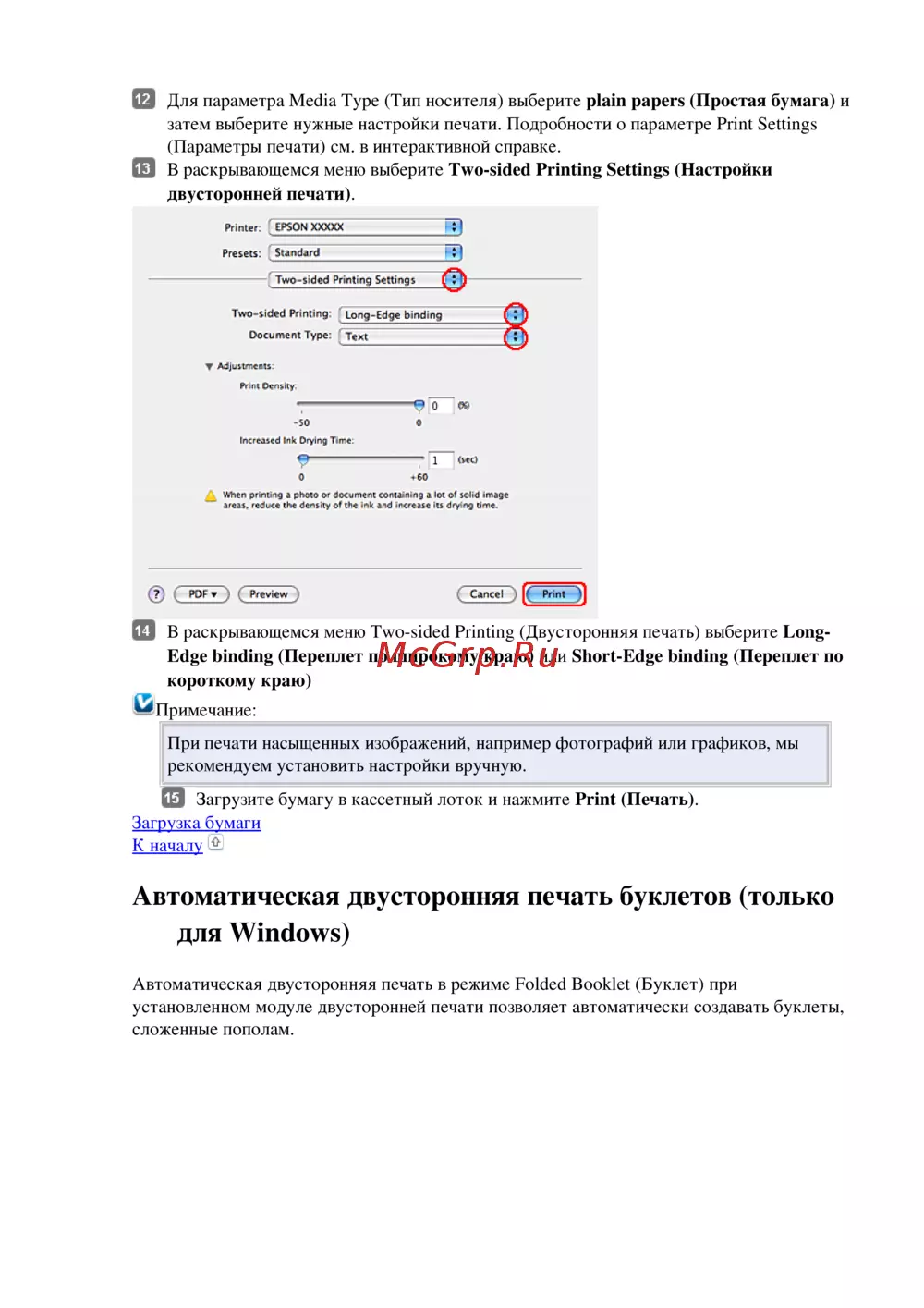 - Ручная стандартная двусторонняя печать только в windows p.46