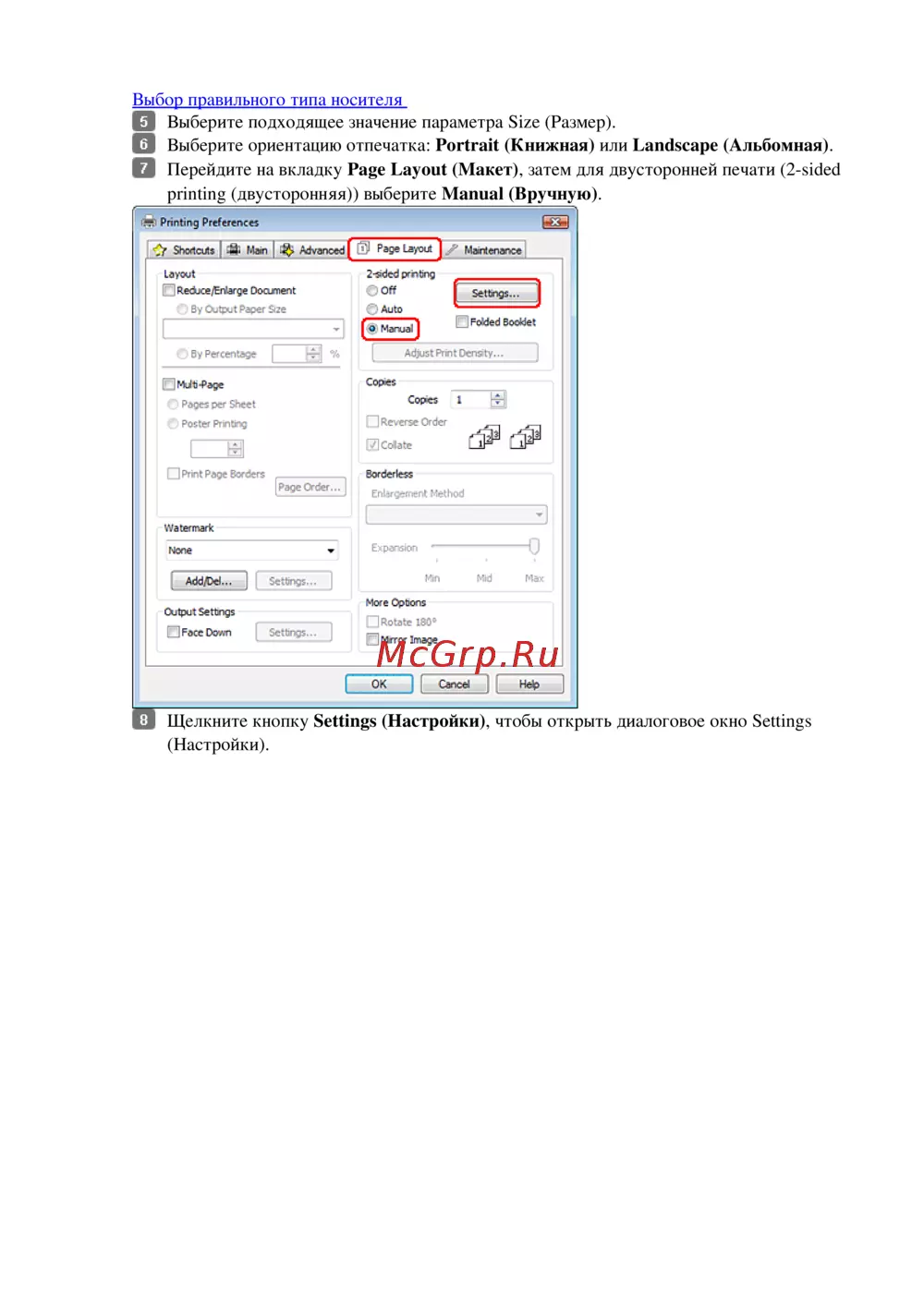 printing (двусторонняя)) выберите Manual (Вручную).