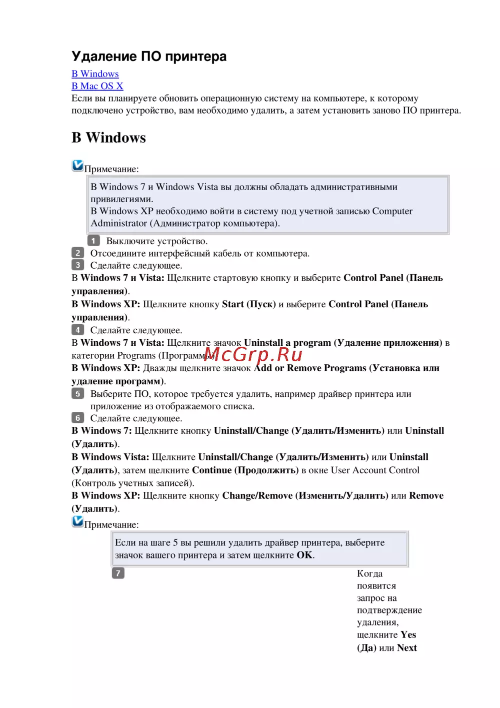 Узнайте, как правильно удалить программное обеспечение принтера в Windows и Mac OS X перед обновлением операционной системы. Подробная пошаговая инструкция.