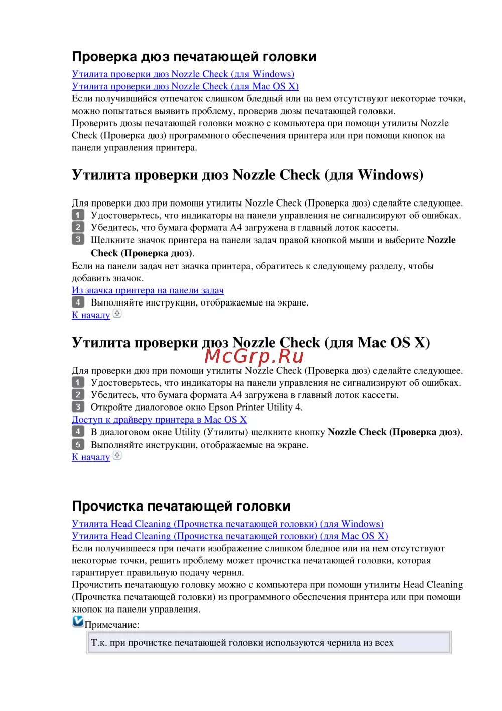 Узнайте, как проверить дюзы печатающей головки и выполнить их прочистку с помощью утилит для Windows и Mac OS X. Поддержите качество печати вашего устройства.
