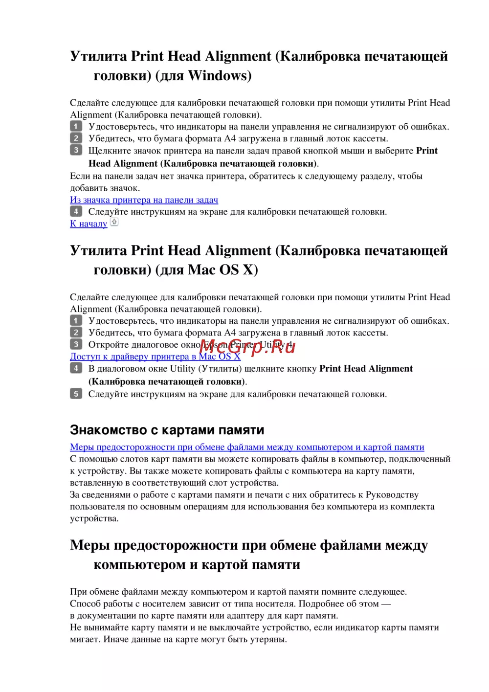 За сведениями о работе с картами памяти и печати с них обратитесь к Руководству