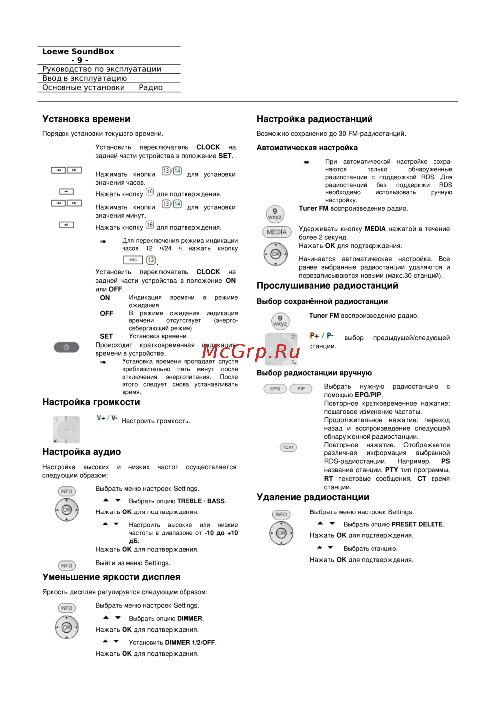 Узнайте, как правильно настроить аудиоустройство: установка времени, настройка громкости, радиостанций и яркости дисплея. Полное руководство для пользователей.