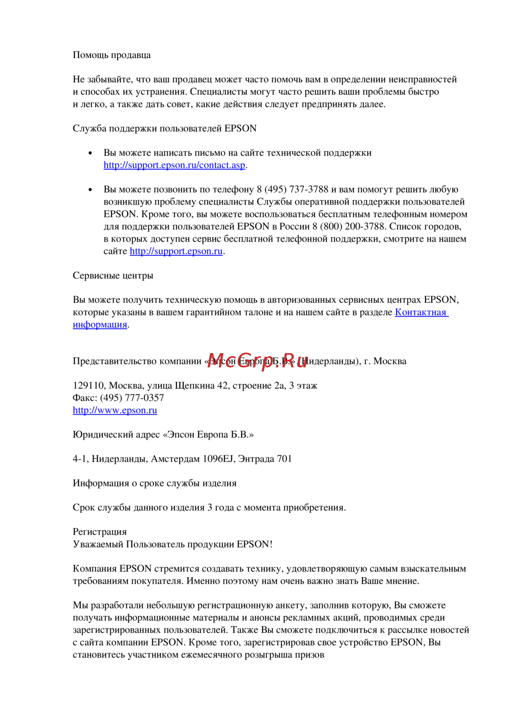 с сайта компании EPSON. Кроме того, зарегистрировав свое устройство EPSON, Вы