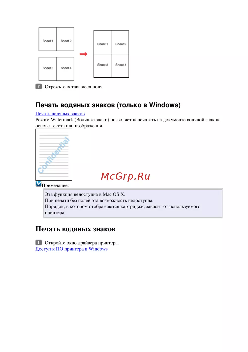 - Печать водяных знаков только в windows p.32