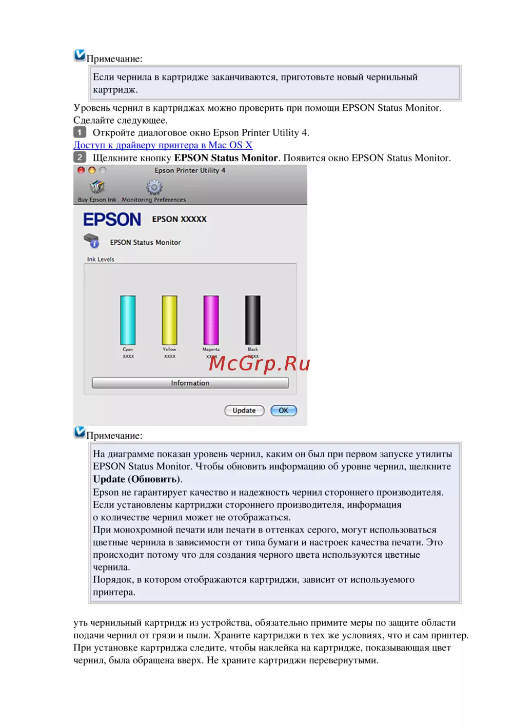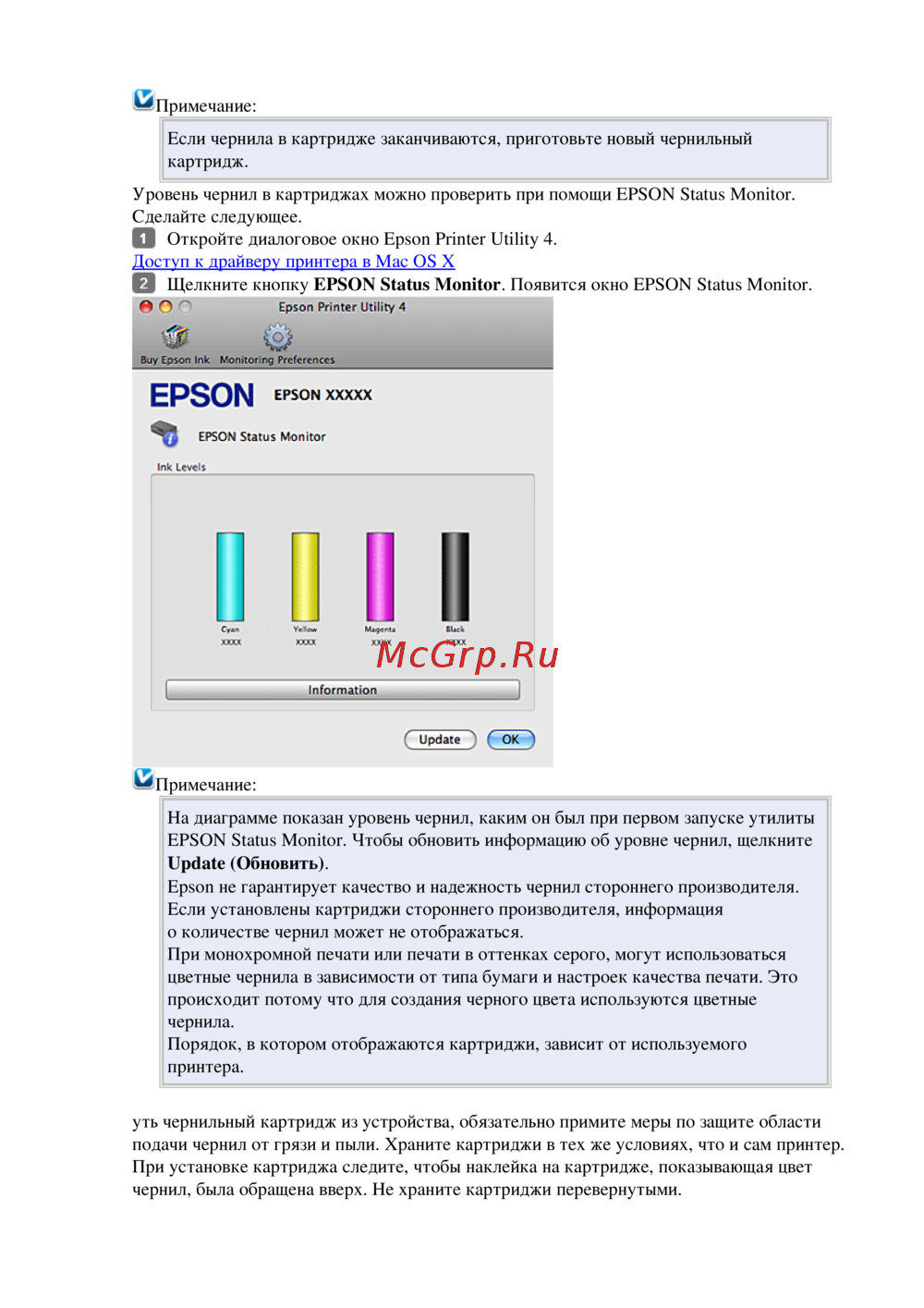 EPSON Status Monitor. Чтобы обновить информацию об уровне чернил, щелкните