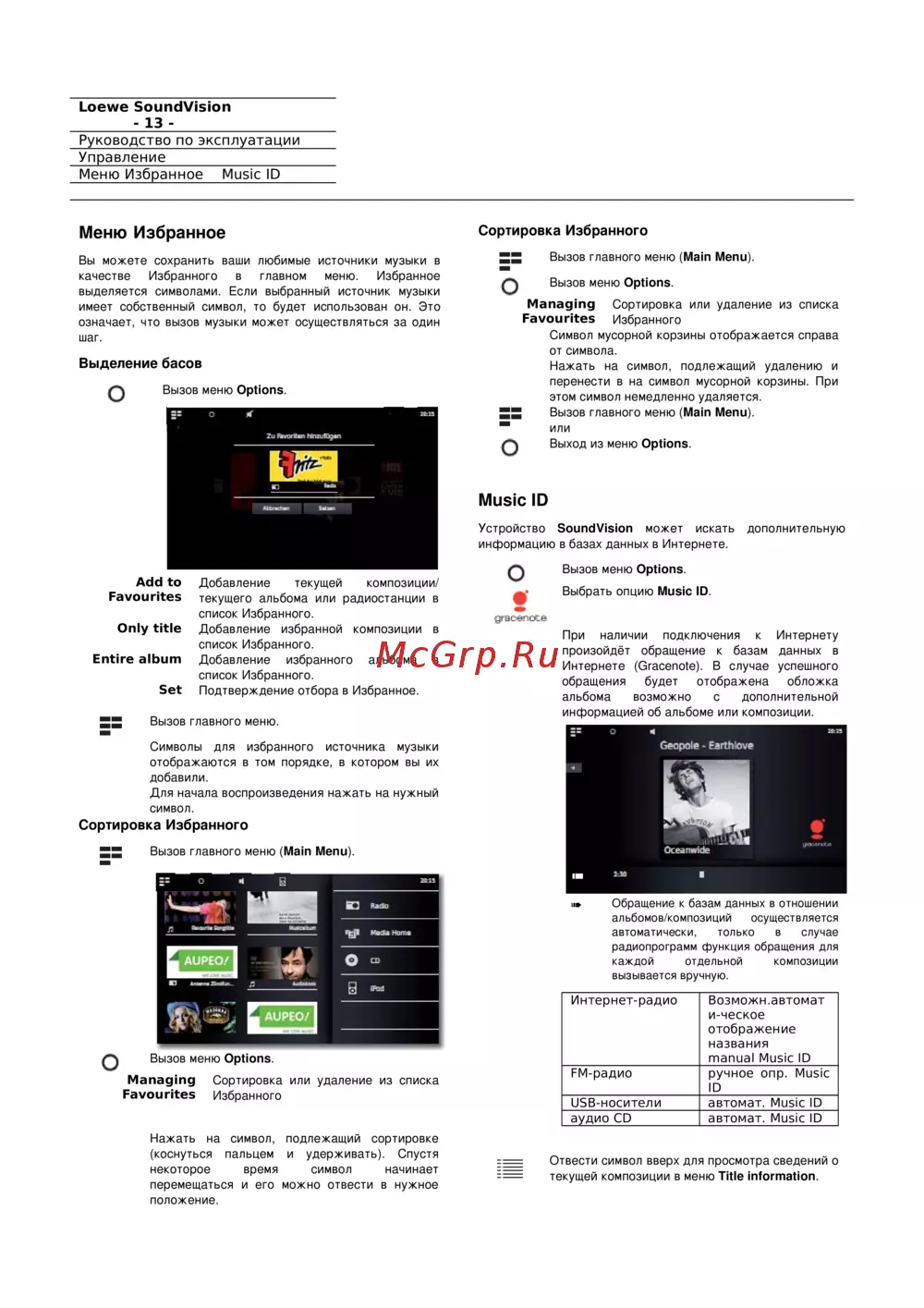 - Руководство по эксплуатации управление меню избранное music id p.17