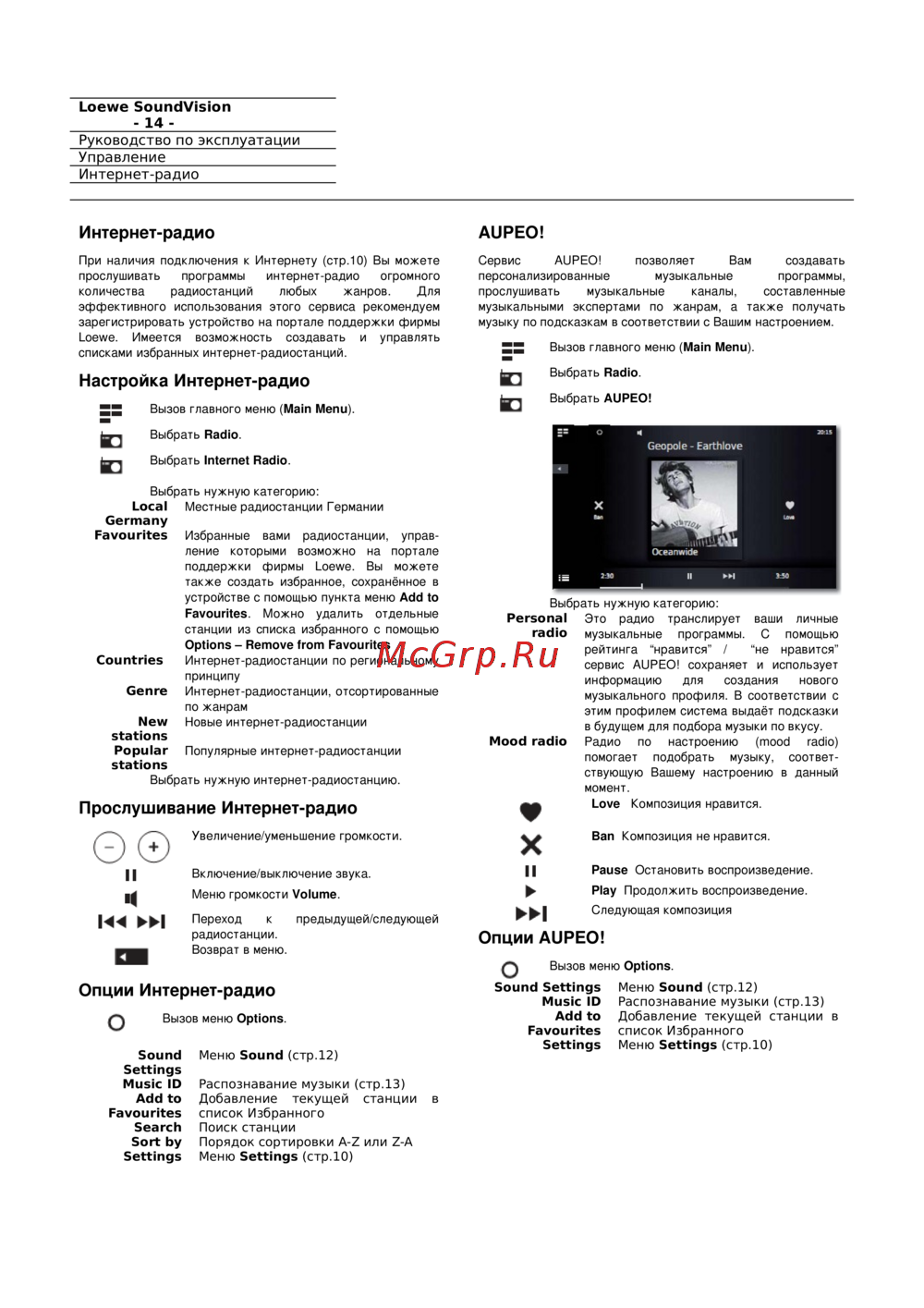 - Опции интернет радио p.19