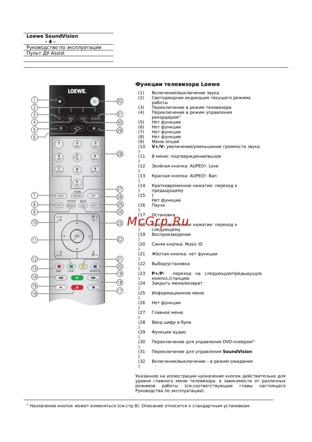Loewe Sound Vision 51203L00 Black — руководство по эксплуатации пульта дистанционного управления телевизора [4/36]