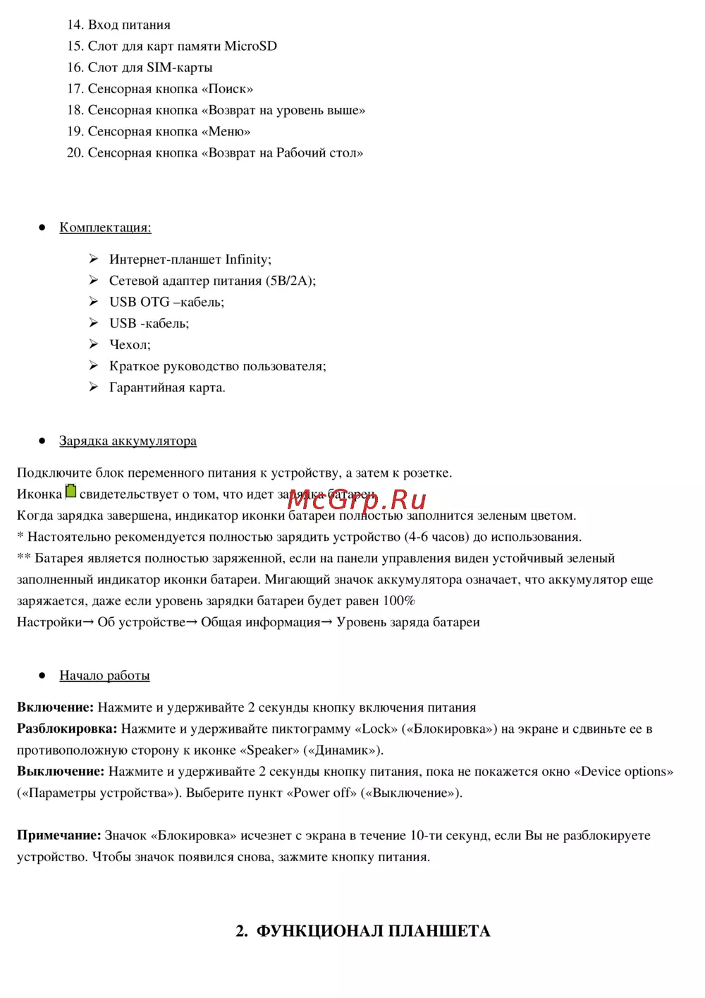 2. ФУНКЦИОНАЛ ПЛАНШЕТА