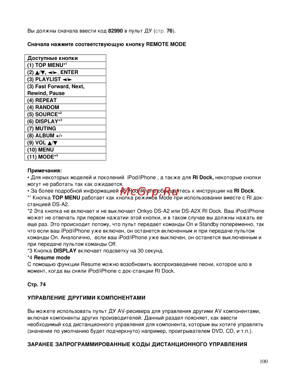 • За более подробной информацией об iPod/iPhone обращайтесь к инструкции на RI Dock.