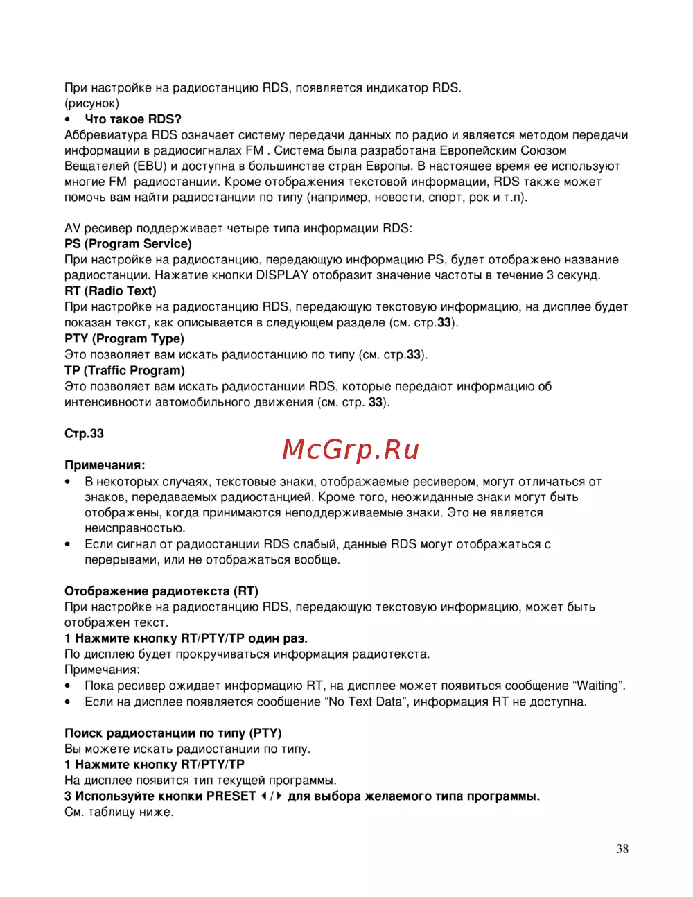 AV ресивер поддерживает четыре типа информации RDS: