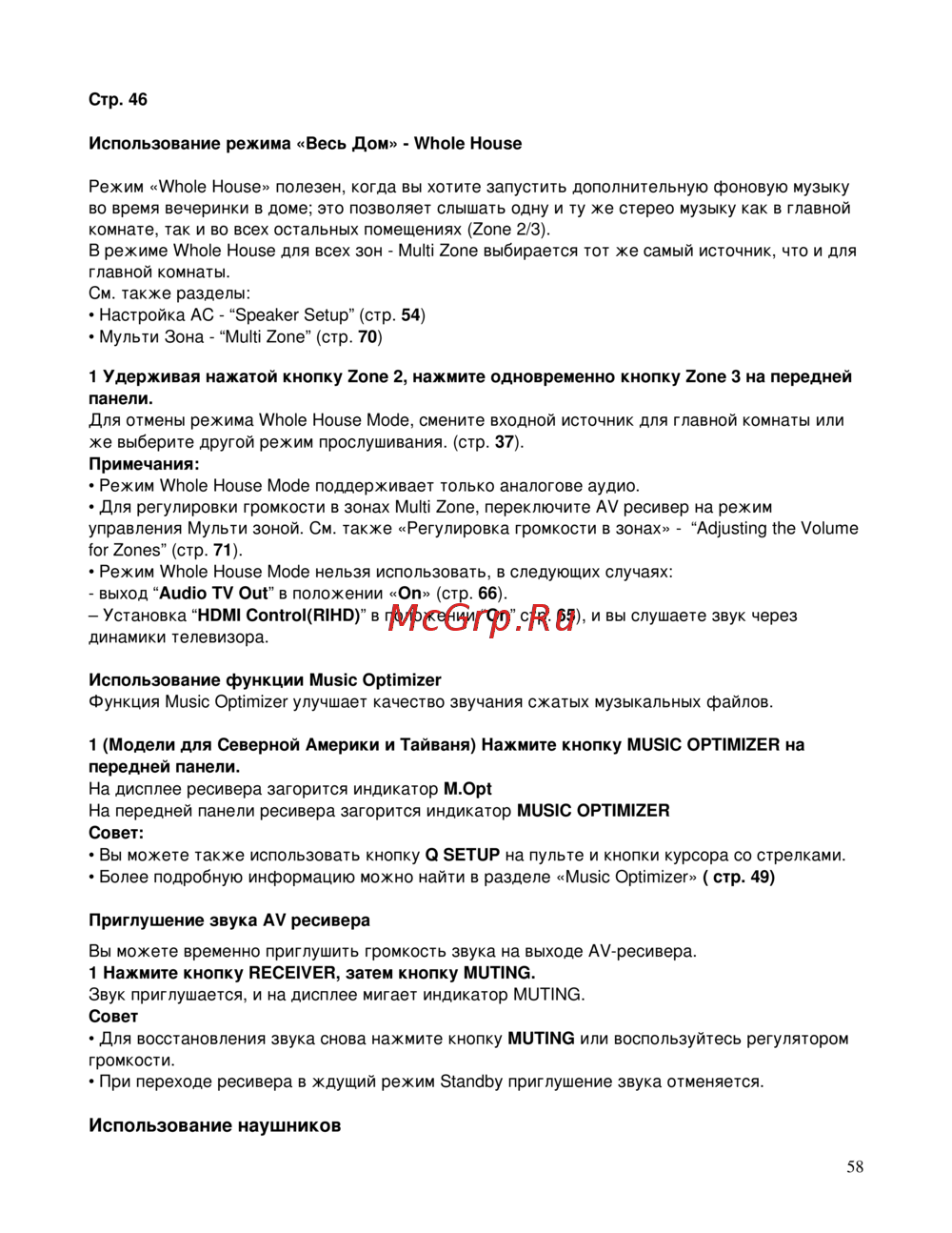 - Использование режимов прослушивания p.44