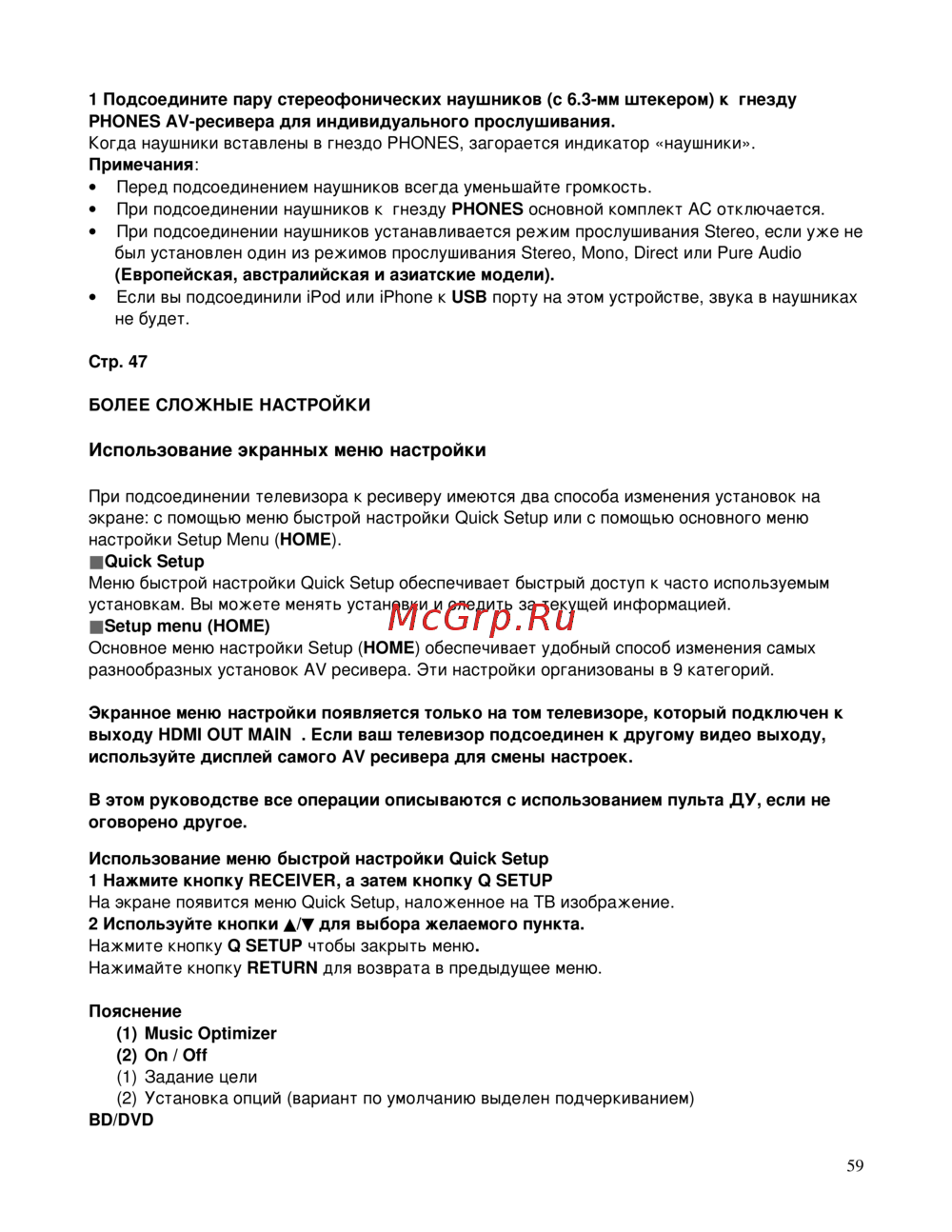 Узнайте, как правильно подключить наушники к AV-ресиверу и использовать меню быстрой настройки для изменения установок. Подробные инструкции и советы.