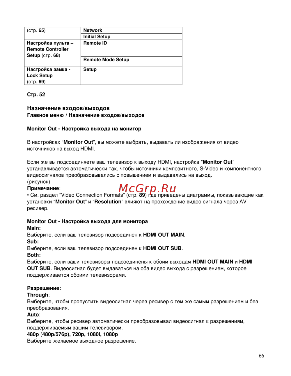 установки “Monitor Out” и “Resolution” влияют на прохождение видео сигнала через AV