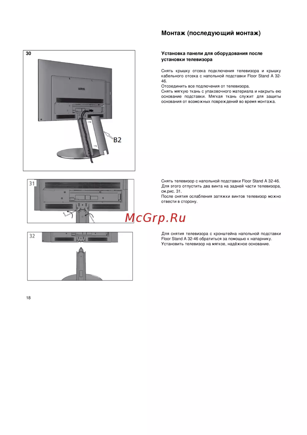 - Поверхность для установки напольной подставки floor stand a 32 46 должна быть горизонтальной и ровной p.4