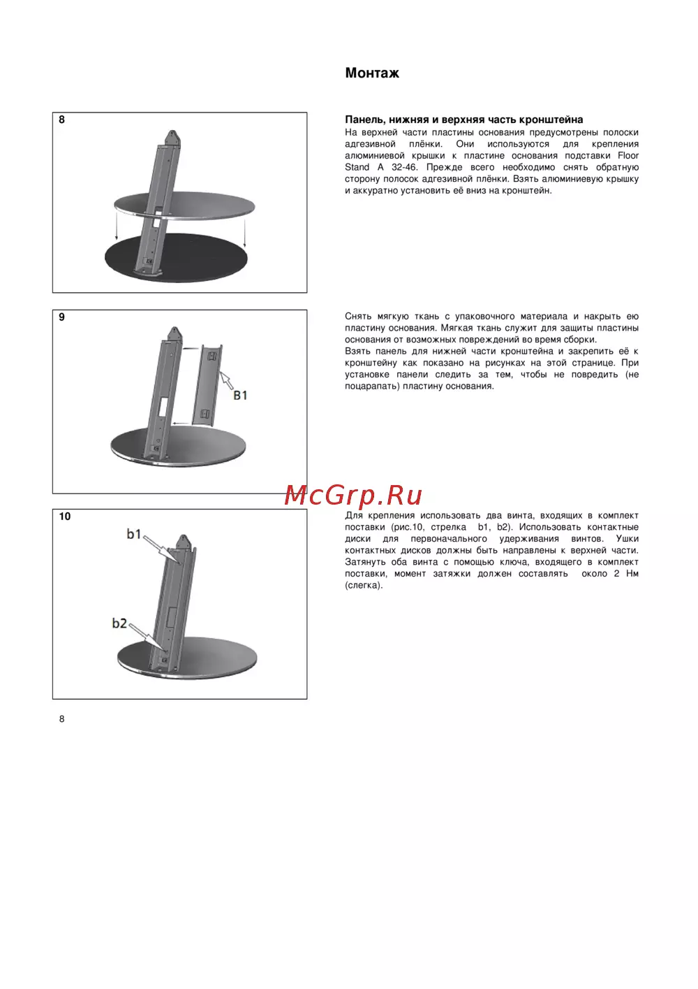- Поверхность для установки напольной подставки floor stand a 32 46 должна быть горизонтальной и ровной p.4