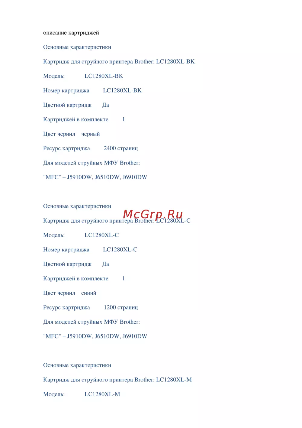 Brother LC1280XL-C Инструкция по эксплуатации онлайн