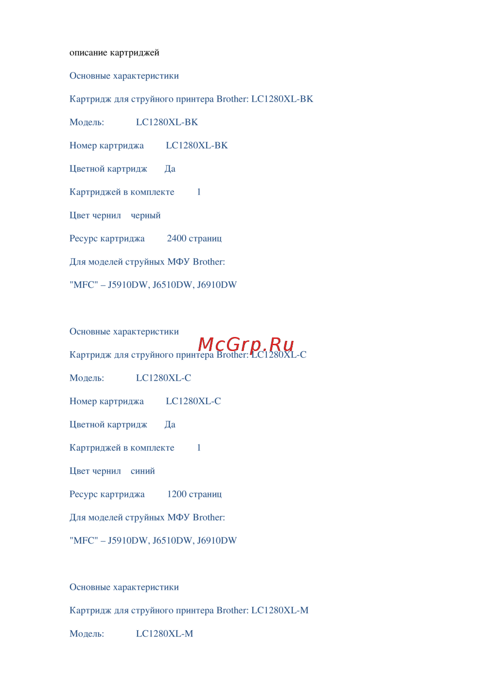 Brother LC1280XL-MИнструкция по эксплуатации -