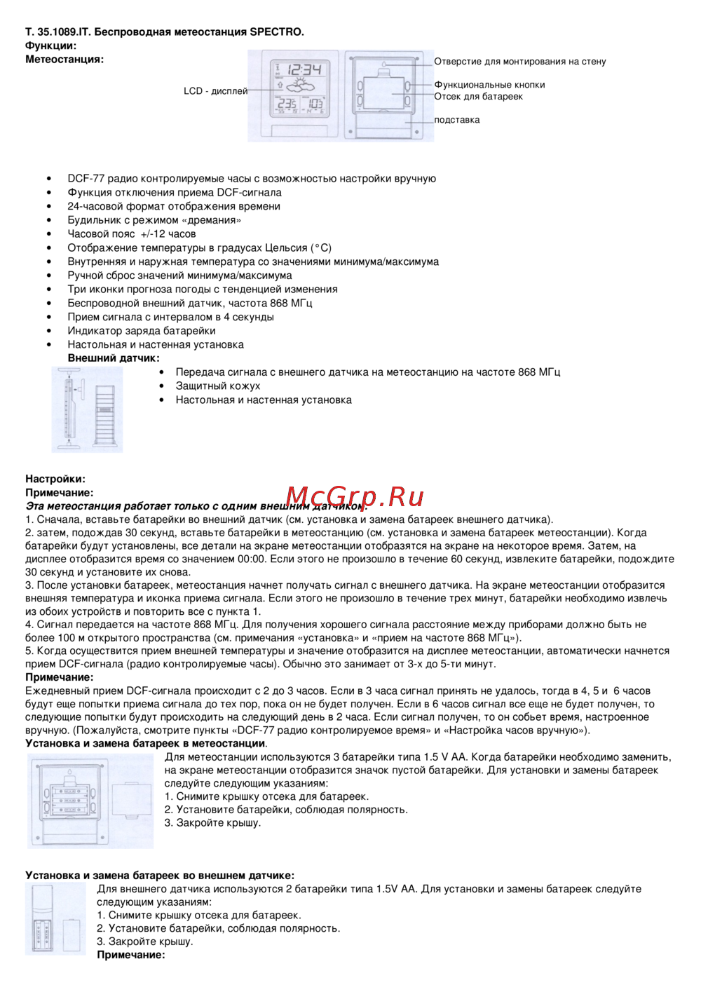 T. 35.1089.IT. Беспроводная метеостанция SPECTRO.