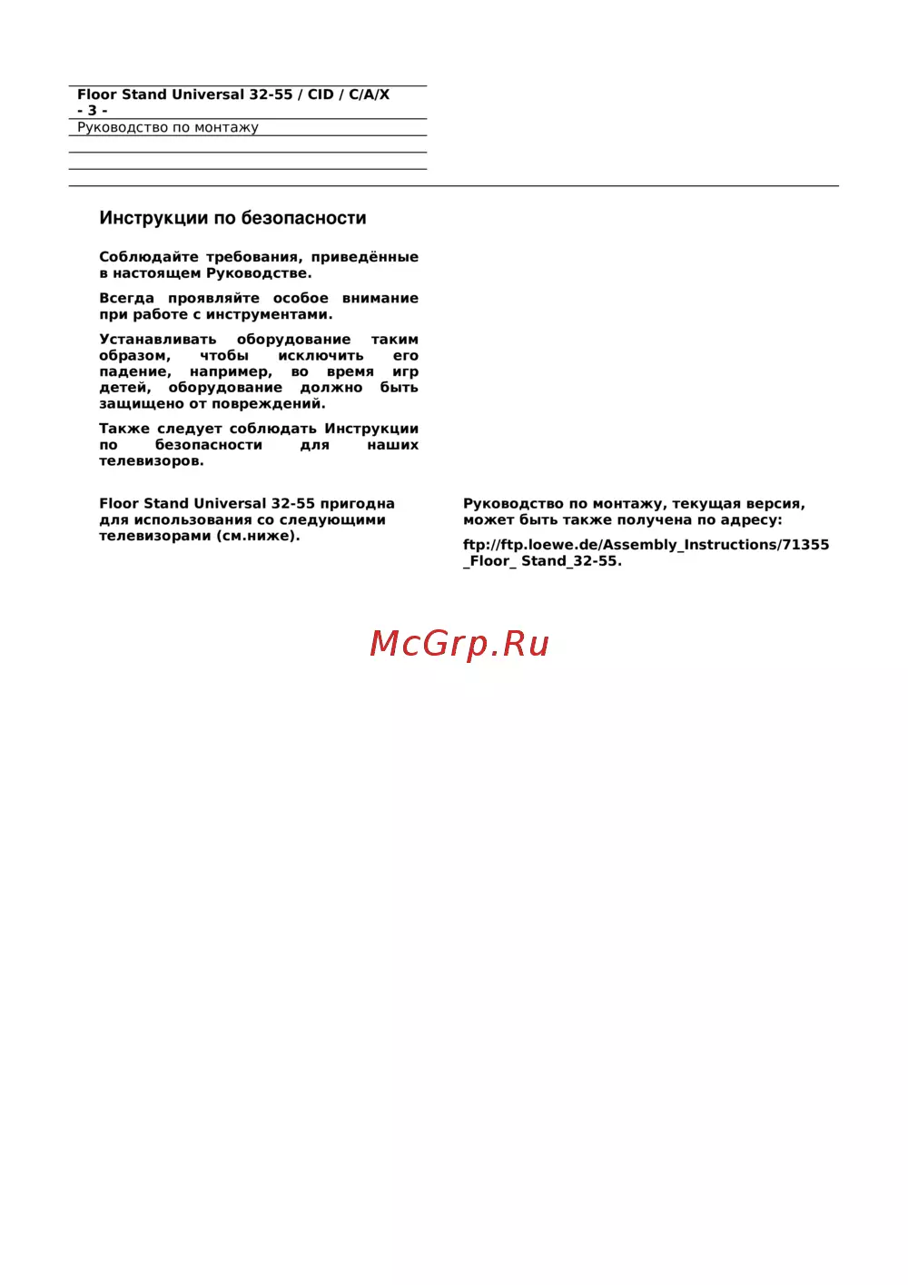 - Floor stand universal 32 55 cid c a x 6 руководство по монтажу p.7