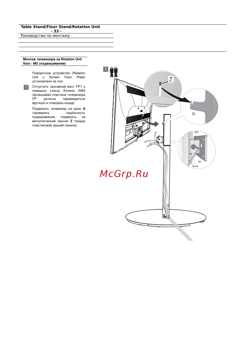 Loewe Screen Floor Cross I 40/46 71520Q00 — инструкция по монтажу телевизора на поворотное устройство [40/55]