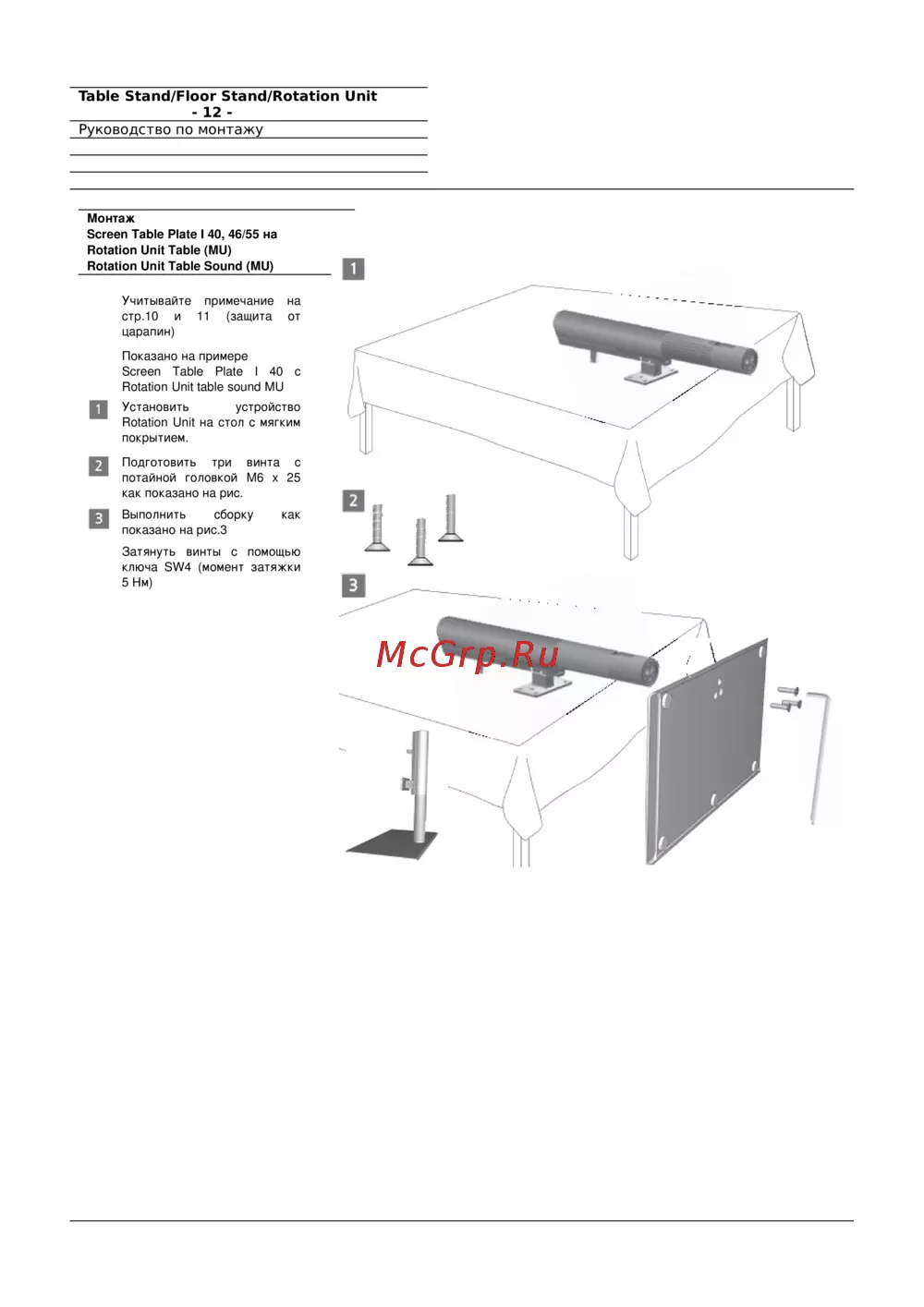 - Объём поставки rotation unit table mu rotation unit table sound mu p.11