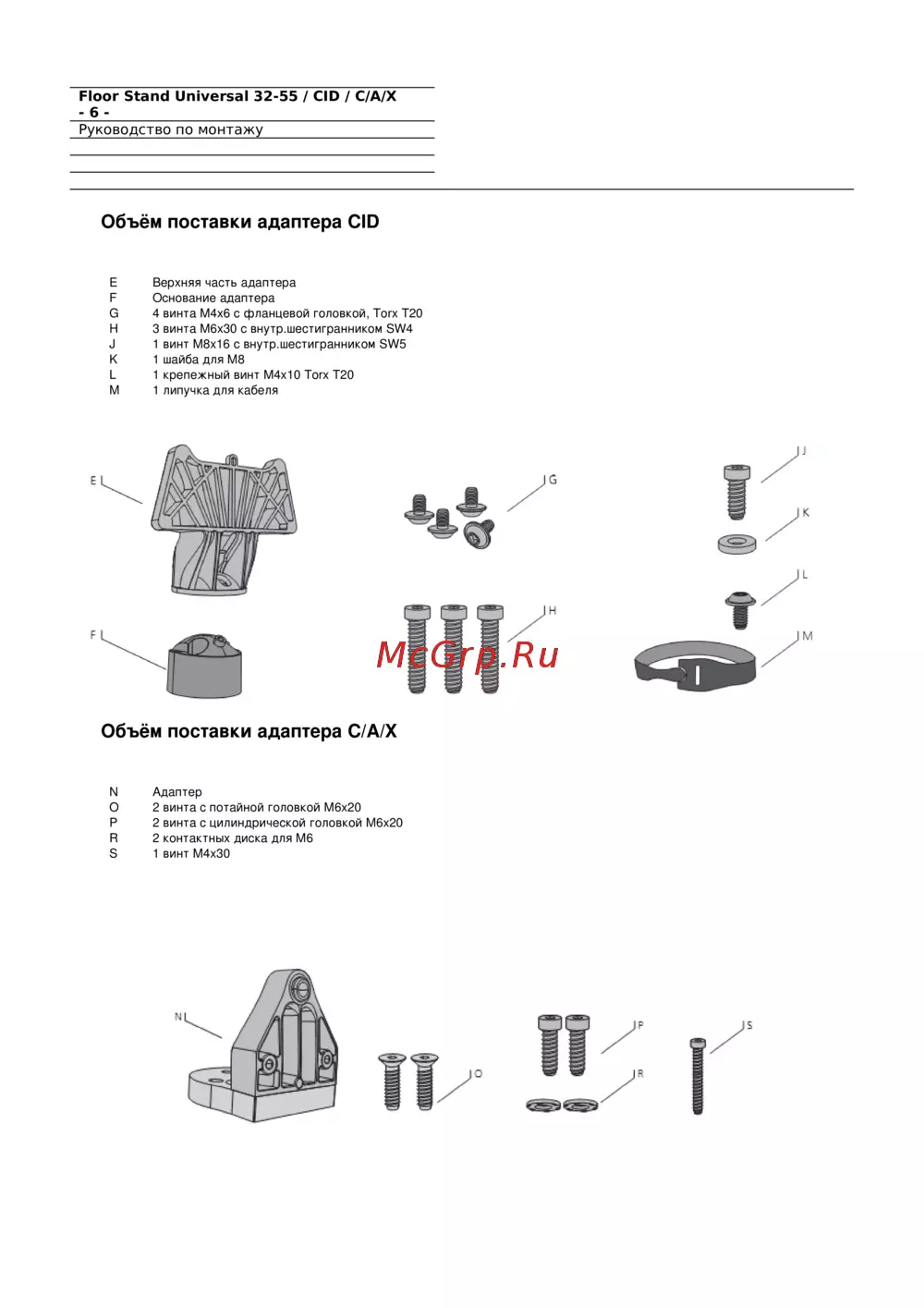 - Floor stand universal 32 55 cid c a x 5 руководство по монтажу p.6