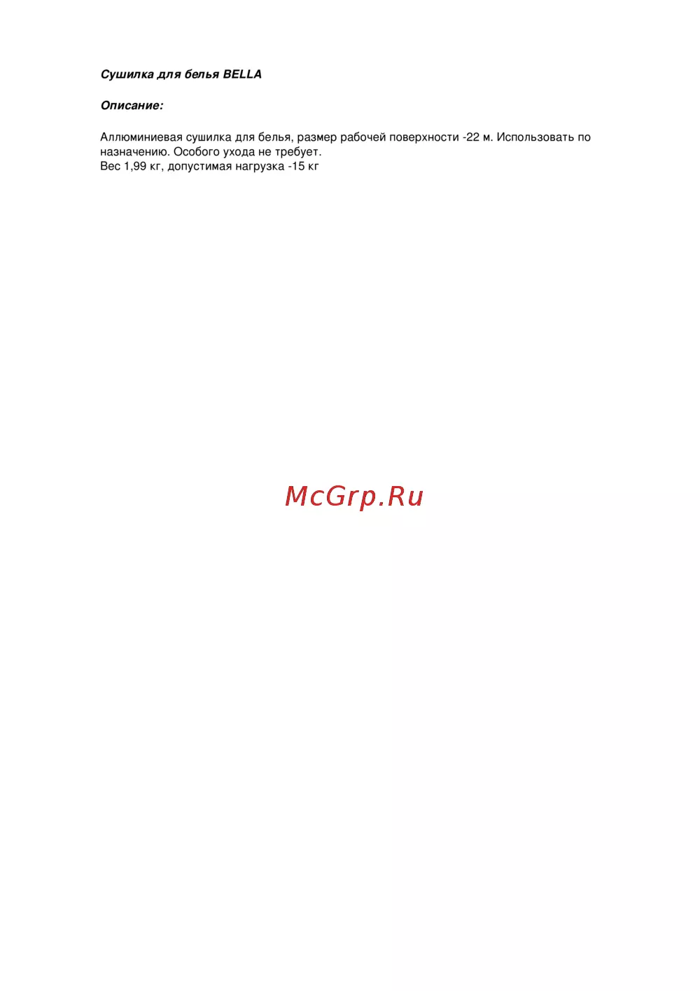 Вес 1,99 кг, допустимая нагрузка -15 кг