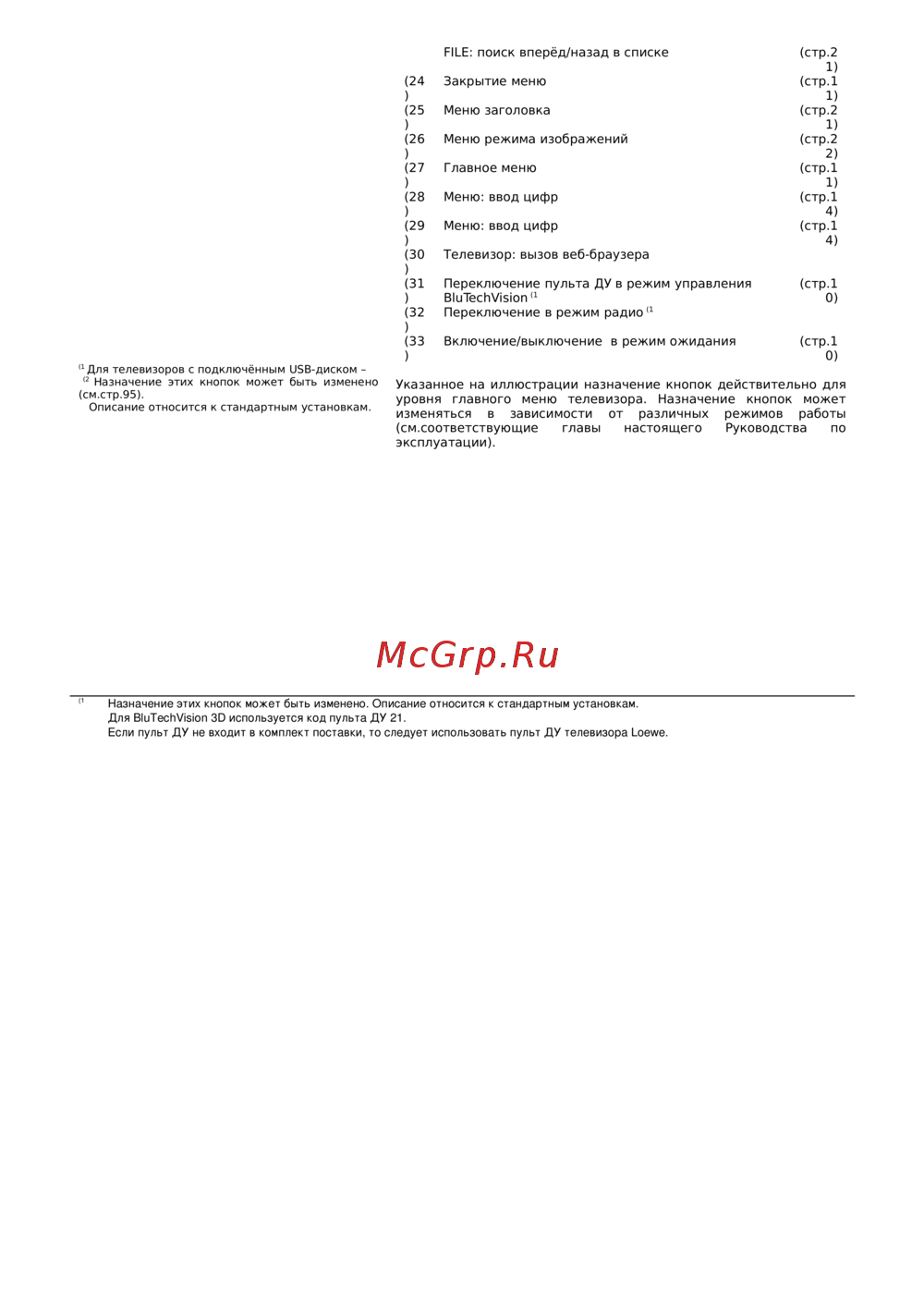 Если пульт ДУ не входит в комплект поставки, то следует использовать пульт ДУ телевизора Loewe.